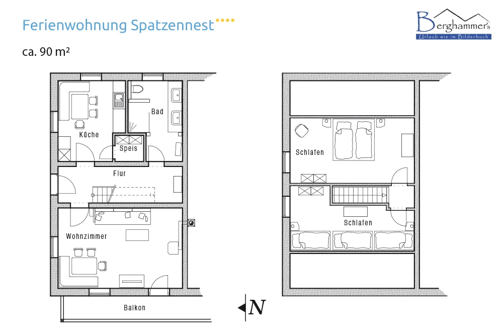 Die Wohnung hat ca. 90 m², zwei Schlafzimmer, im Kinderzimmer sind drei Betten, ein großes Badezimmer mit Toilette, 2 Waschbecken, einer großzügigen ebenerdigen Dusche, eine separate Küche mit Essplatz, einen Abstellraum, ein großes Wohnzimmer mit Essplatz, Couch und Kaminofen, einen Balkon und eine Terrasse. Wohnzimmer und Bad wurden 2024 neu renoviert.